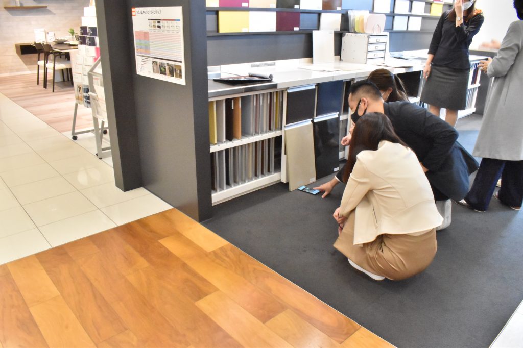 また、ショールーム担当者にアドバイスをもらいながら、好みに合う色や素材、デザインもセレクトされていました。