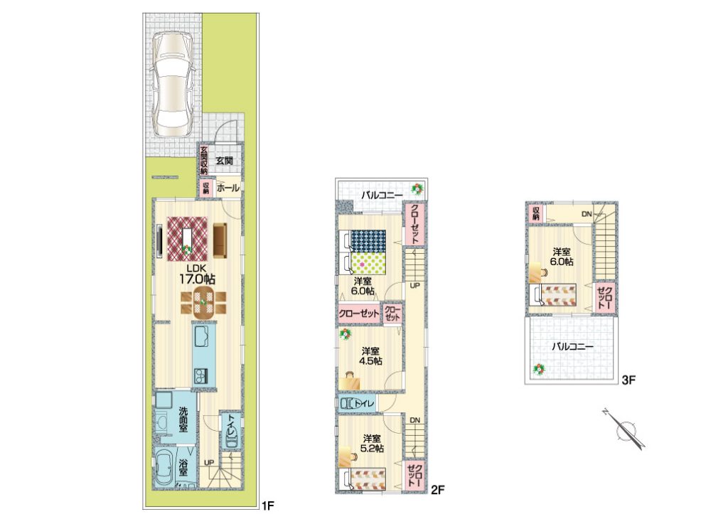 2階部分には6帖、4.5帖、5.2帖の3つの洋室を配置しました。