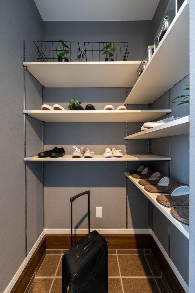 玄関に靴が散らばらず、いつでもきれいな玄関を保てることで人気の収納です。