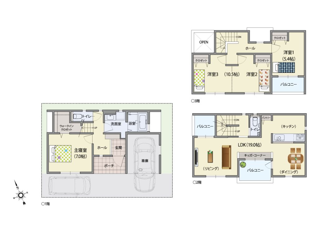 2台分の駐車スペースやリビングカウンター、可変性の高い子ども部屋を設けた暮らしやすい間取りをご紹介しました。