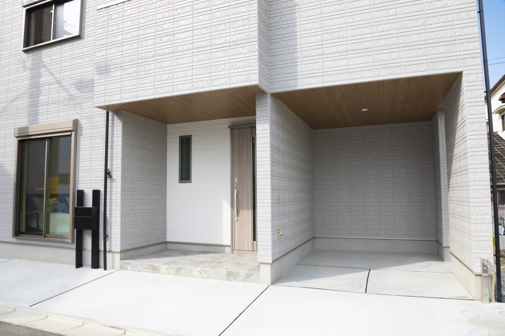 玄関前のスペースと合わせて、2台の車を駐車できます。