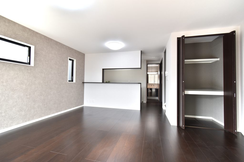 こちらはリビングにたっぷりの奥行きがある収納を設けた実例です。