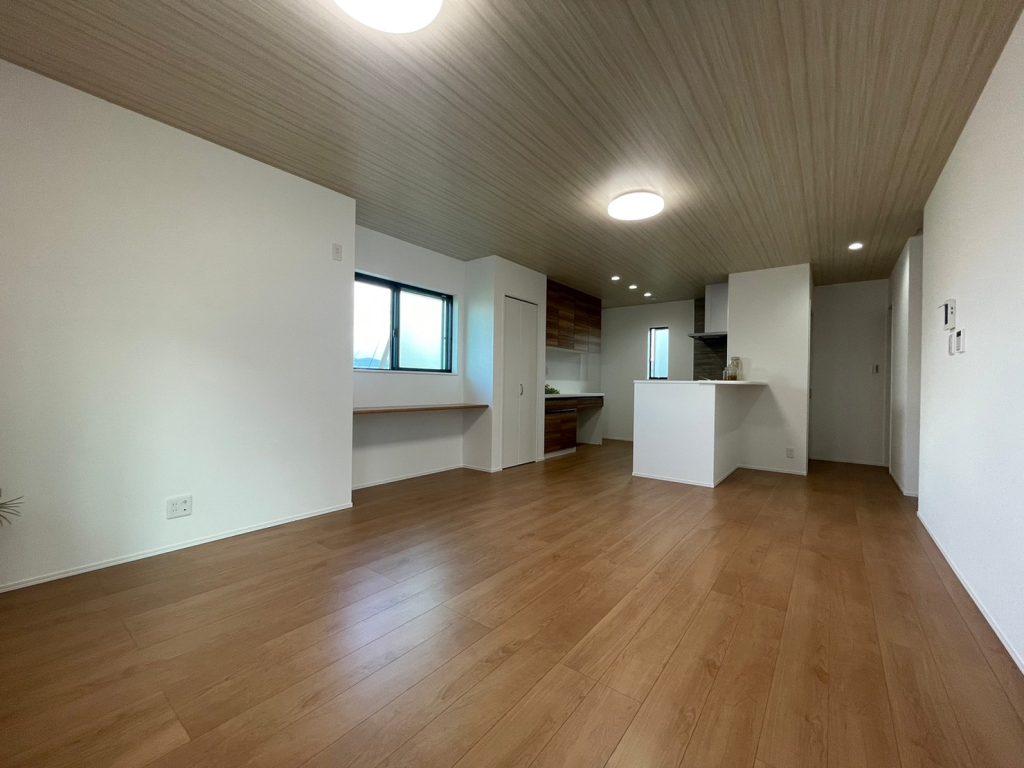 ●LDKの天井に貼った木目調クロスでナチュラルな空間に