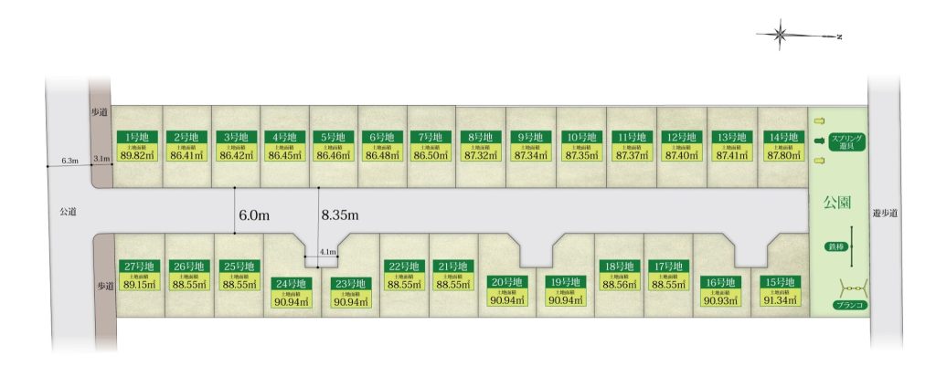 当分譲地の最大の特徴、それは名前の「with Park」にもある通り、公園に隣接していること。分譲地北側の隣接公園は、分譲地に住む人にとっては、まるで「わが家の専用庭」のような存在です。