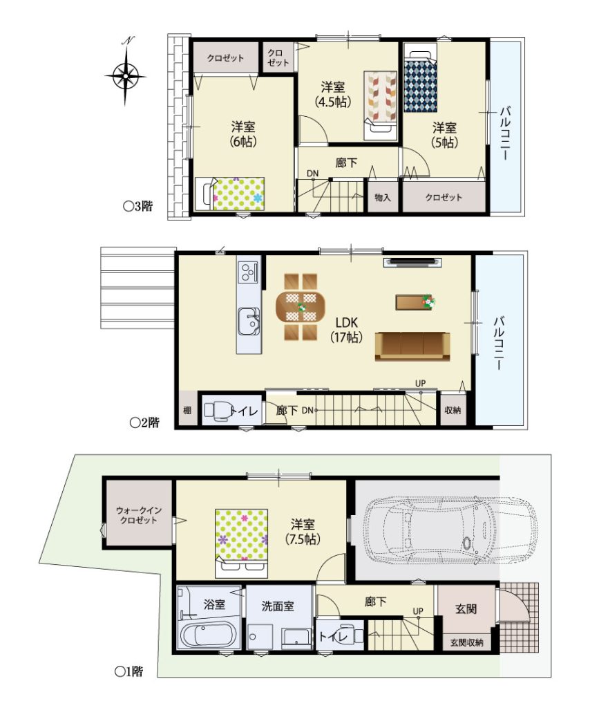 明るく広いLDKを確保!2階リビングを中心とした3階建ての間取りをご紹介