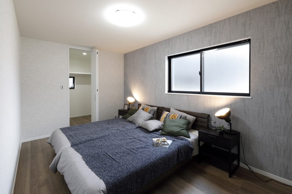 主寝室には広いウォークインクローゼットを備え、ご夫婦の衣類のほか、かさの高い布団や季節家電などもたっぷり収納できるようにしています。