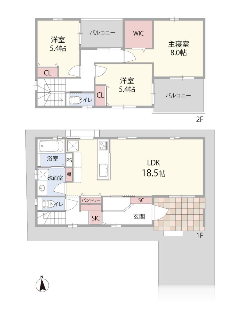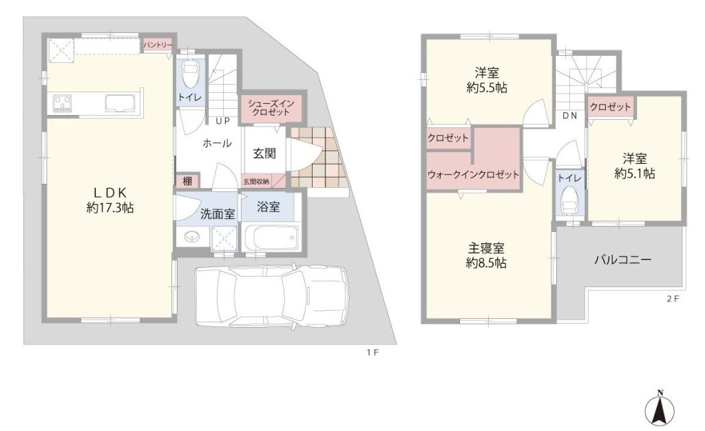 陽当たりのよい2階LDKや家事のしやすいコンパクトな水回り、適材適所&充実の収納スペース、全居室5帖以上のあるのも魅力です。