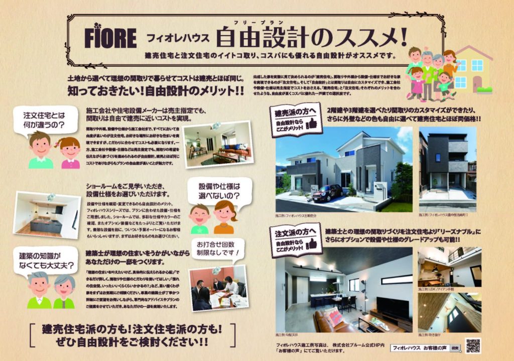 今回は、分譲住宅でありながら、注文住宅と変わらないくらい自由度の高い家づくりができる、フィオレハウスの「自由設計プラン」をご紹介します。