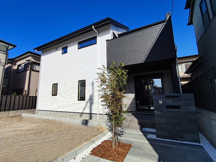 2台駐車可で、約13mの玄関アプローチのあるおしゃれなエクステリアが魅力のモデルハウス。