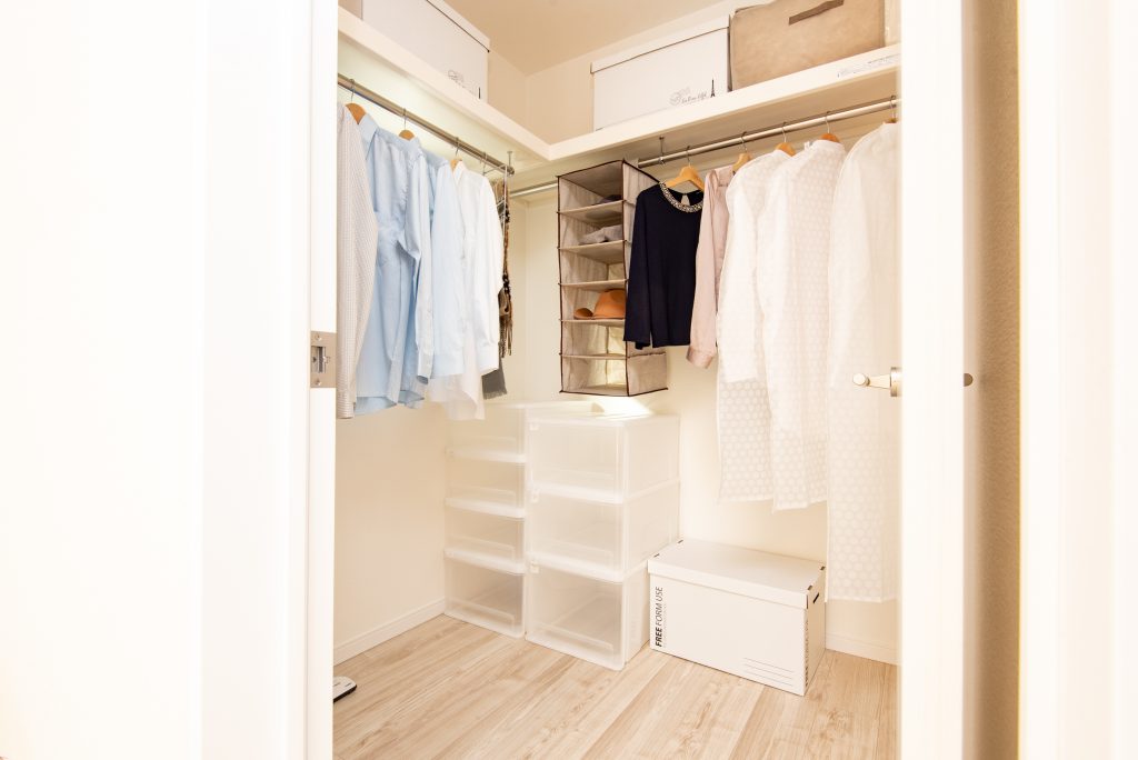 2階に水廻りを配置し、玄関にはベビーカーやアウトドアグッズが収納できるシューズクローゼット、各洋室にもクローゼットを配置しています。