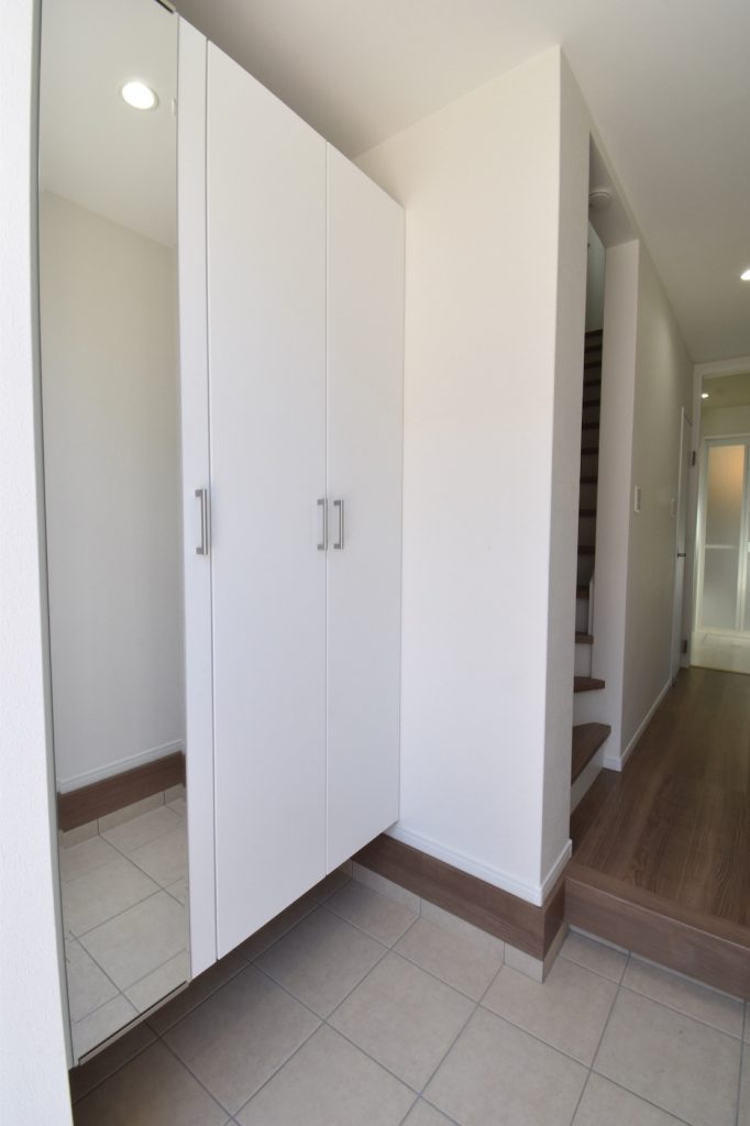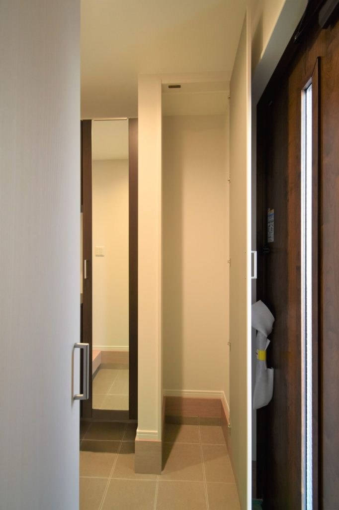 また、玄関に一枚鏡を設置するだけでも、奥行きが生まれ、実際の面積以上の広がりを感じられる空間になります。