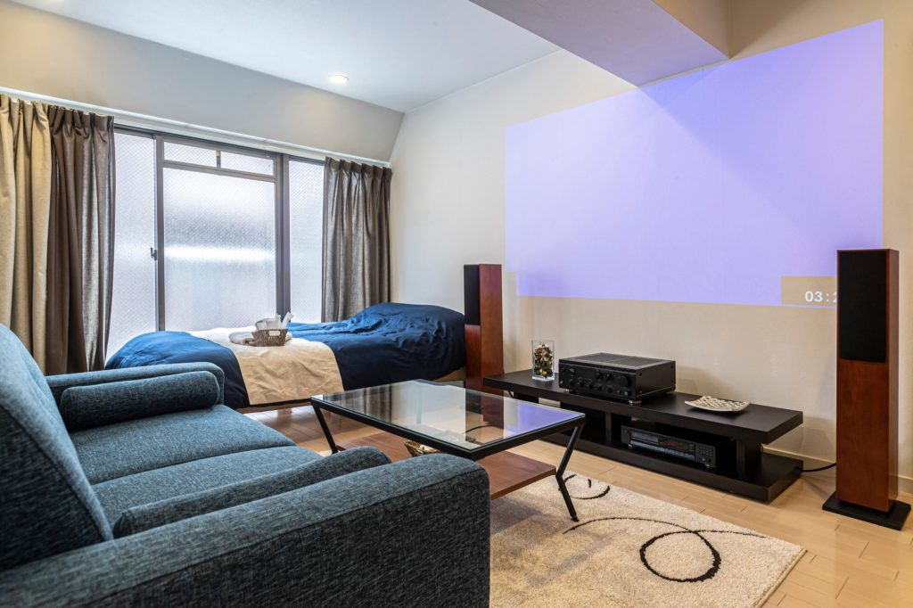 リビングの一角や専用の部屋にプロジェクターとスクリーンを設置すれば、たちまちプライベートな映画館に。