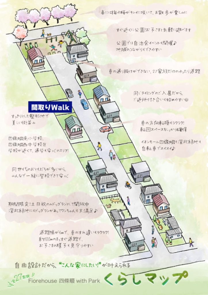 「春には桜がキレイ」「車の通り抜けができないから安心」といった、実際に暮らすイメージが膨らむ情報が満載ですので、こちらもぜひ手に取ってみてくださいね。