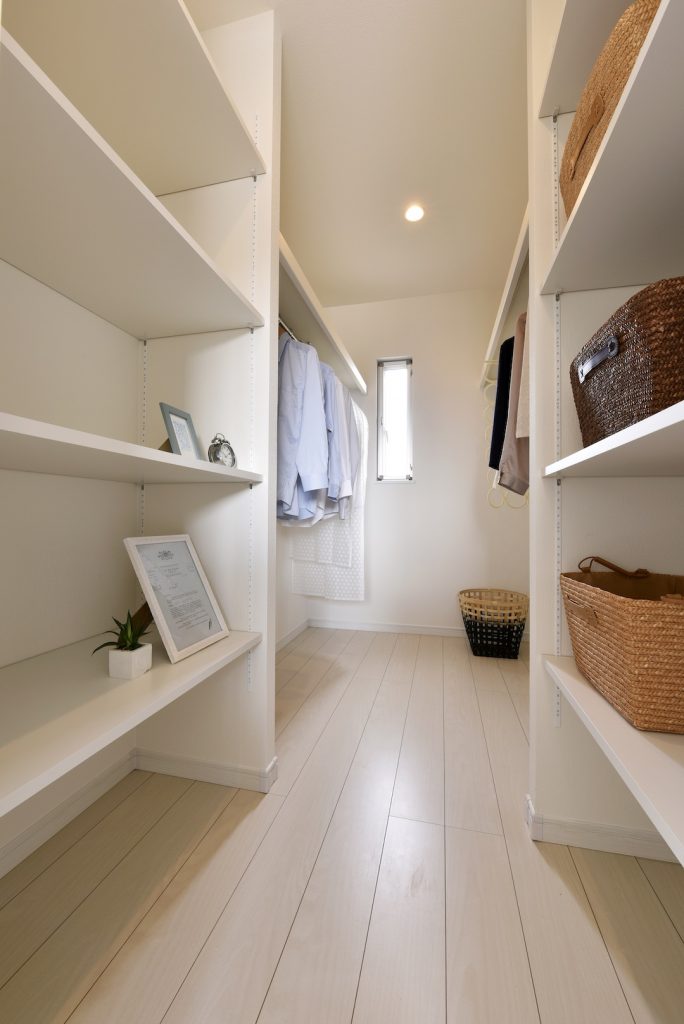 主寝室には、たっぷりの衣類が収納できる大容量のウォークインクローゼットがおすすめ。洋服やバッグはもちろん、季節ものや普段使わない電化製品などもまとめて収納できます。