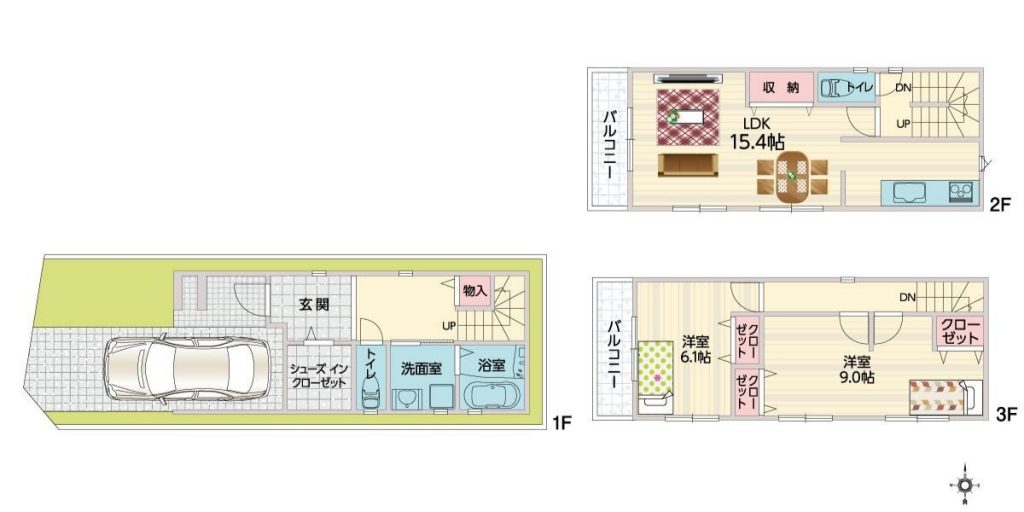 実際の間取りや仕様設備を見てみたいという方は、ぜひ淀川区分譲地(フィオレハウス三国サンストリート/全48区画)のモデルハウスをご見学ください。