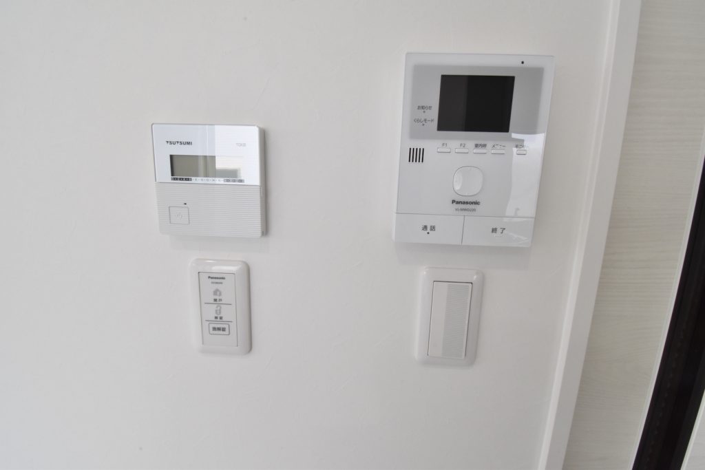 「録画機能付テレビモニター付インターホン」から来訪者を事前にチェックでき、リビングから鍵の開閉ができます。