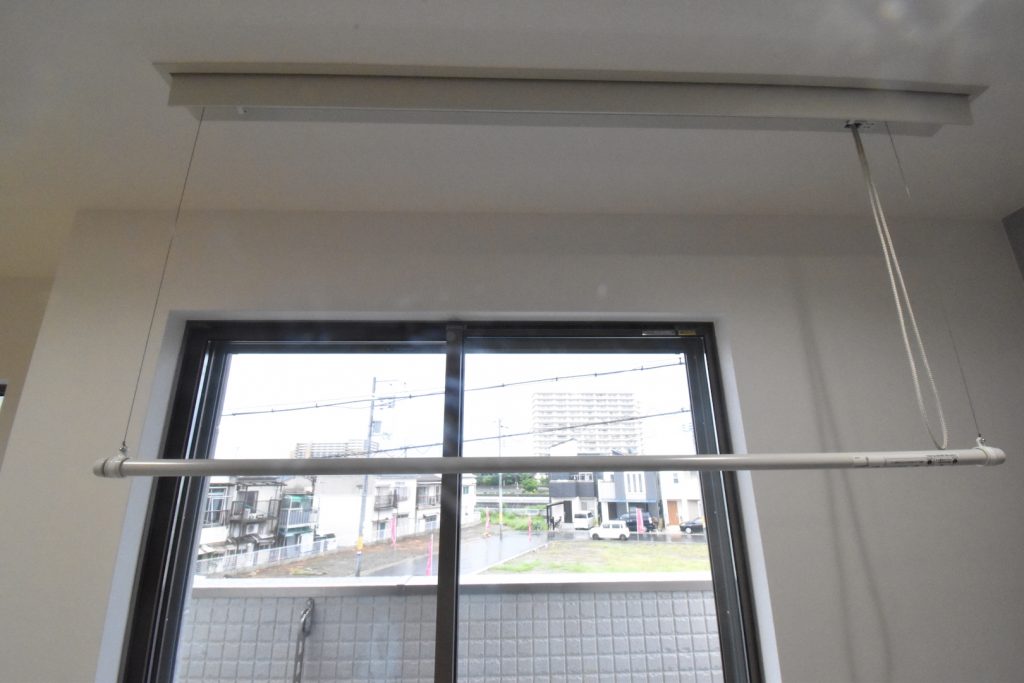 また、バルコニー側に、に室内物干しユニットのPanasonic「ホシ姫サマ」を設置。