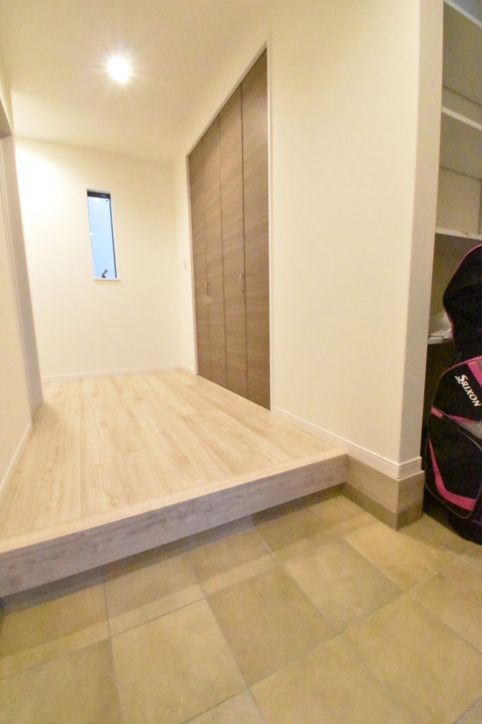 玄関脇には、ゴルフバッグも置ける広めの土間収納を設けています。