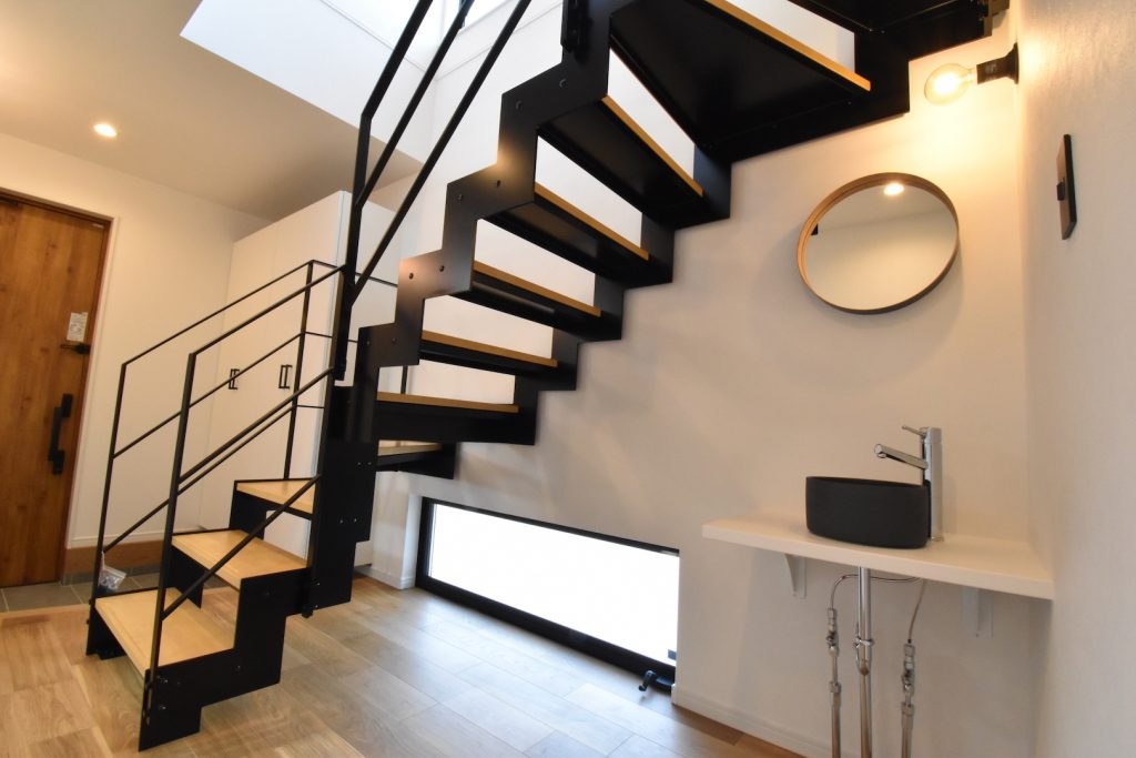 そしてなんといっても、当初は予算が折り合わず断念することも考えていた吹き抜けとスケルトンの鉄骨階段!出来上がったのを初めて見たときには、涙が出そうでした(笑)。大満足です。