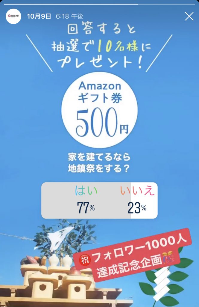 日頃ブルームのInstagramをフォローしてくださっている方へのプレゼント企画として、また、お客様の声を少しでも家づくりに生かせたらと考え、毎週金曜日に実施。
