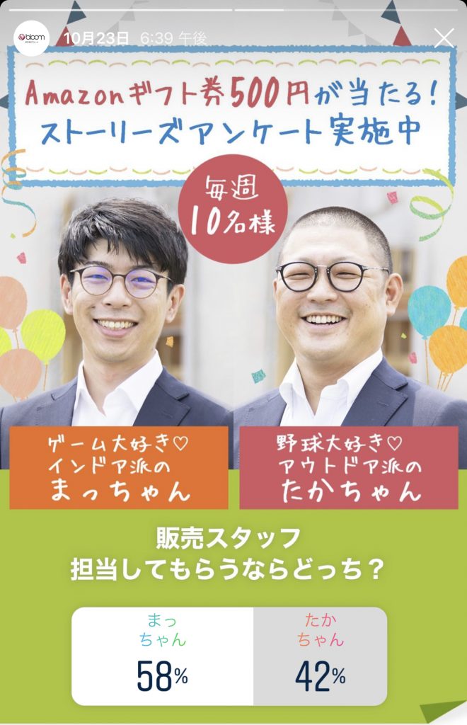 ブルームの公式Instagramにおいてフォロワー1000人達成記念企画として10月からスタートした、ストーリーズアンケート。