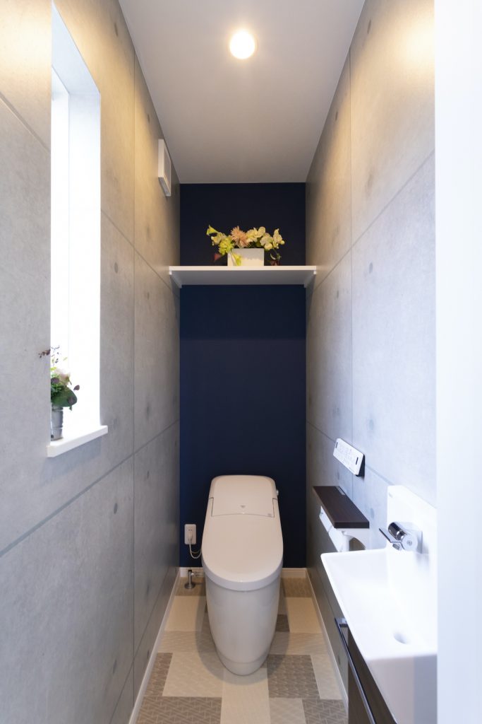 憧れのコンクリート打ちっぱなし風のクロスを取り入れたトイレです。