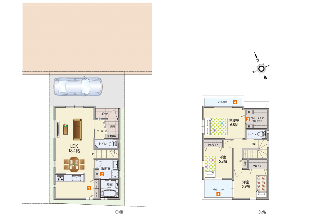 バルコニーは南北2ヵ所に設置し、全ての居室は2面からの採光を実現しました。