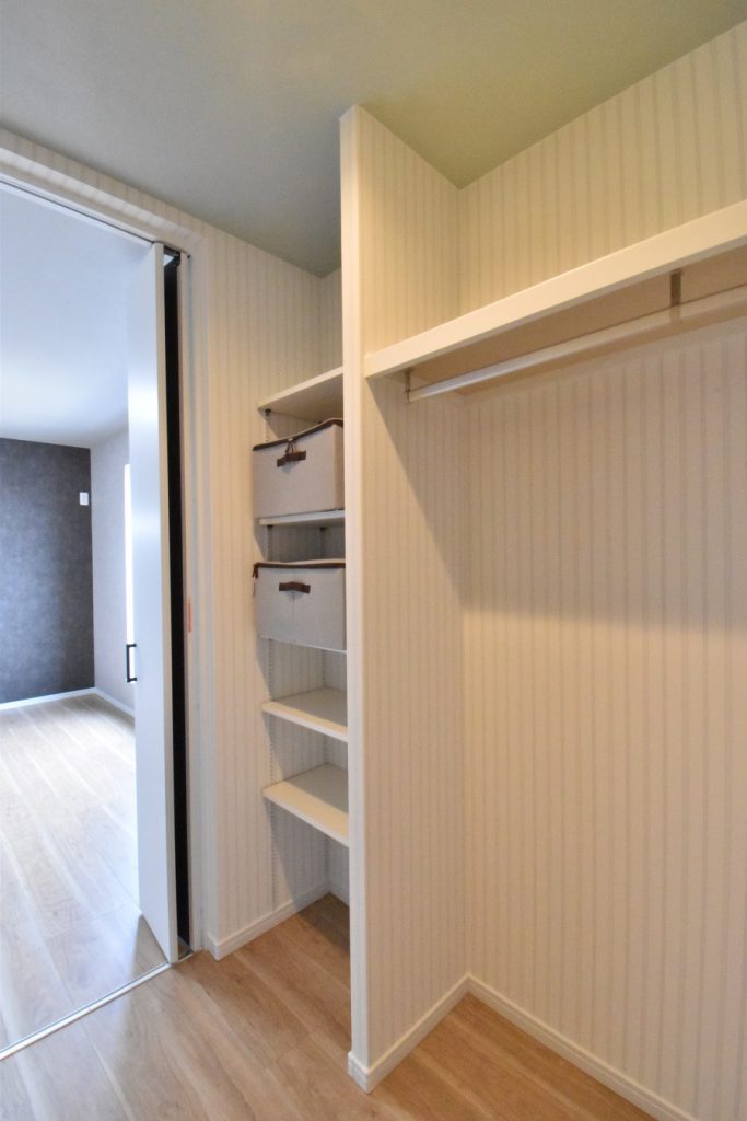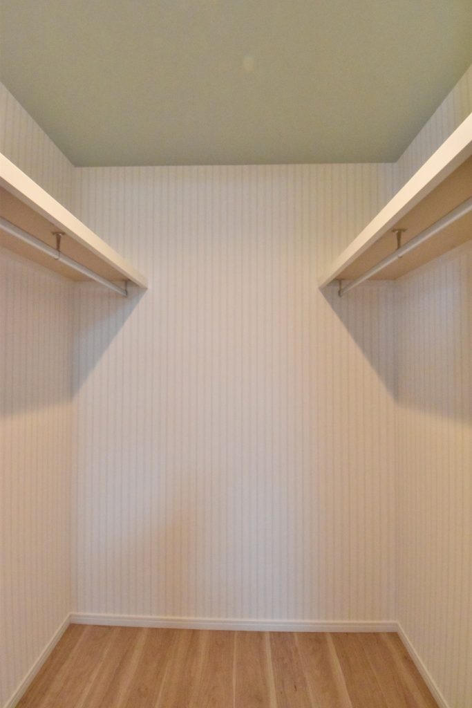 2階の主寝室には、ご夫婦の衣類をすっきりと収納できるパイプハンガーと可動棚付のウォークインクロゼットを設置しました。