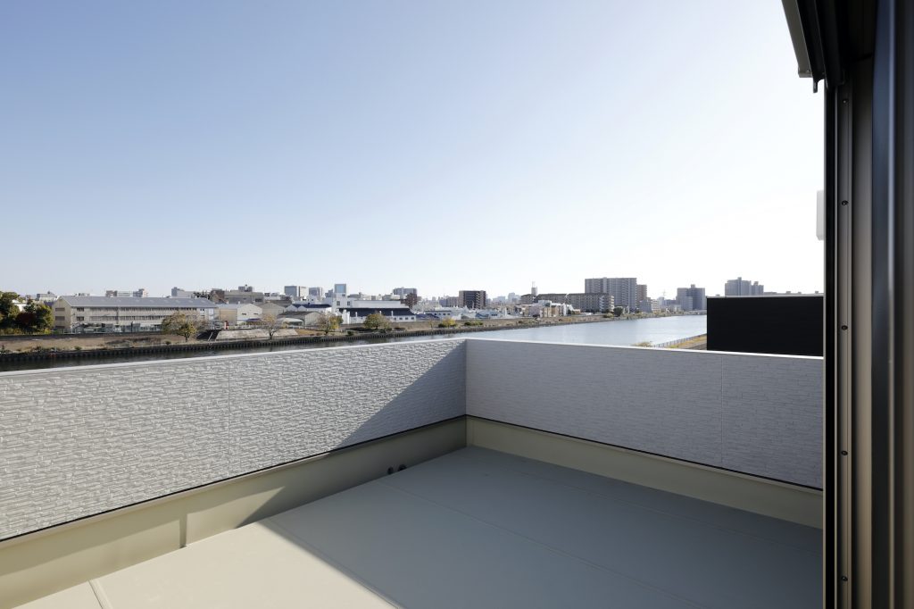 分譲地の東には神崎川が流れ、大きく開けた景色が広がっています。