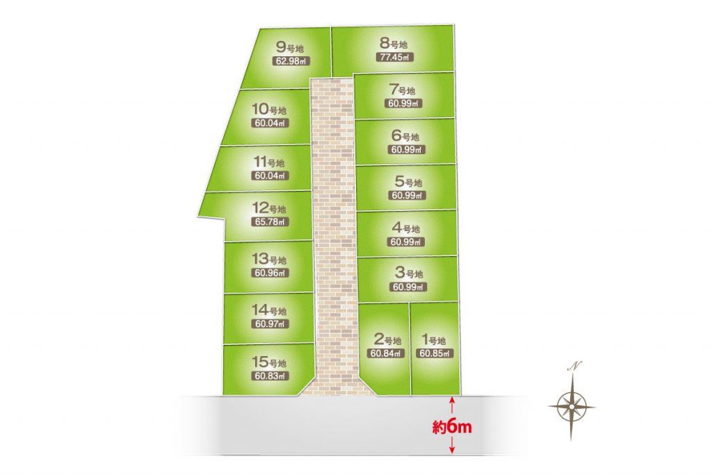 分譲地の南側道路は6mと見通しも良く、出入りしやすい分譲地です。