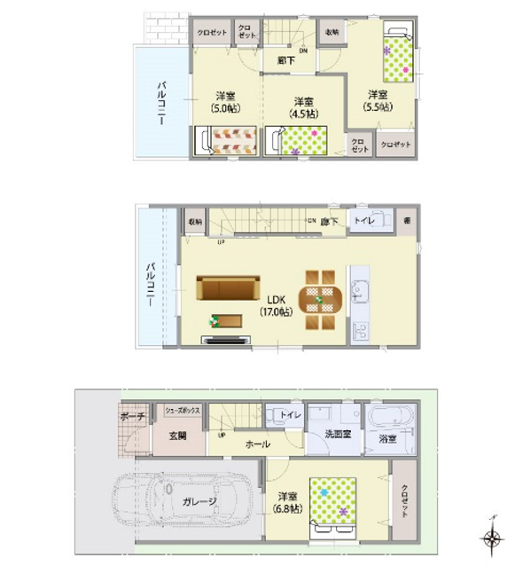 ・敷地面積/60.04m²(18.16坪)~77.45m²(23.42坪)