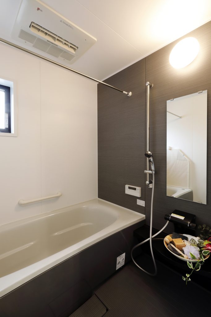 浴室には、温室暖房乾燥機とハンガーポールを設置。