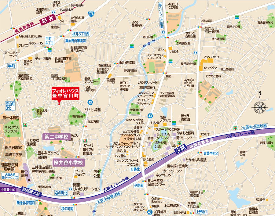 特に、フィオレハウス豊中宮山町は、周辺に「大阪大学豊中キャンパス」や、幼稚園から高校までの一貫校「箕面自由学園」などがある文教エリアとなっており、子育て中のご家庭にぜひおすすめしたい分譲地です。