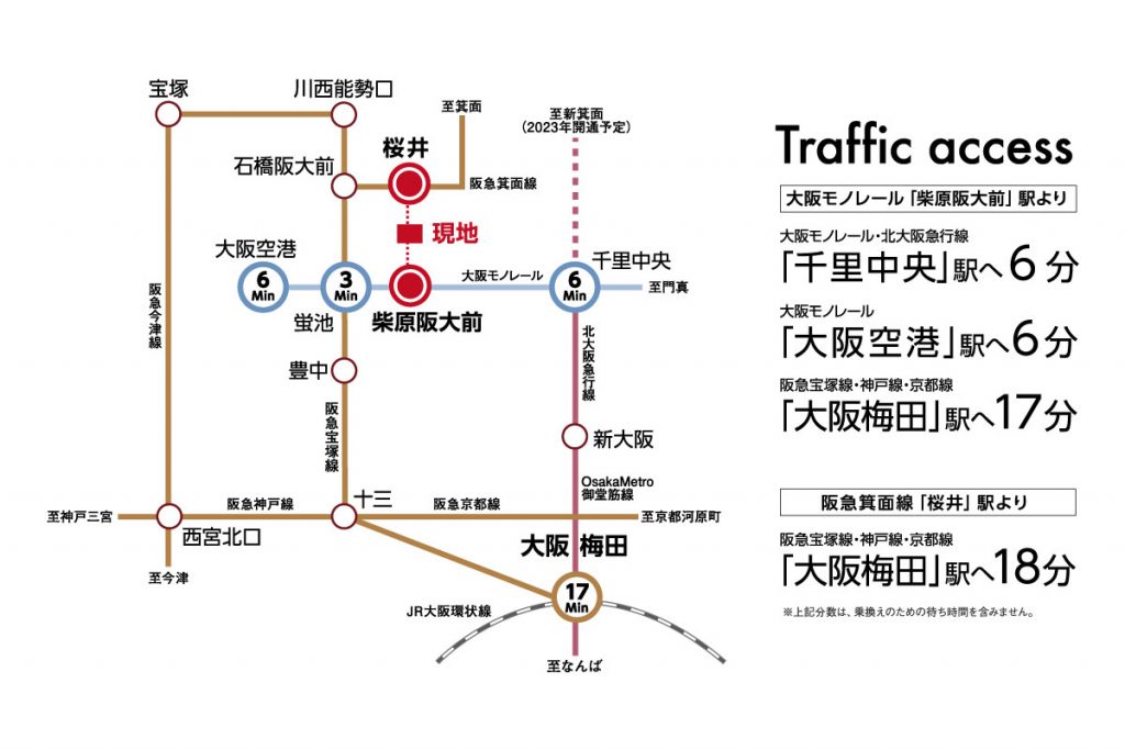 「大阪梅田」駅までは17分と、各方面へはもちろん、大阪都心部へアクセスもラクラク。