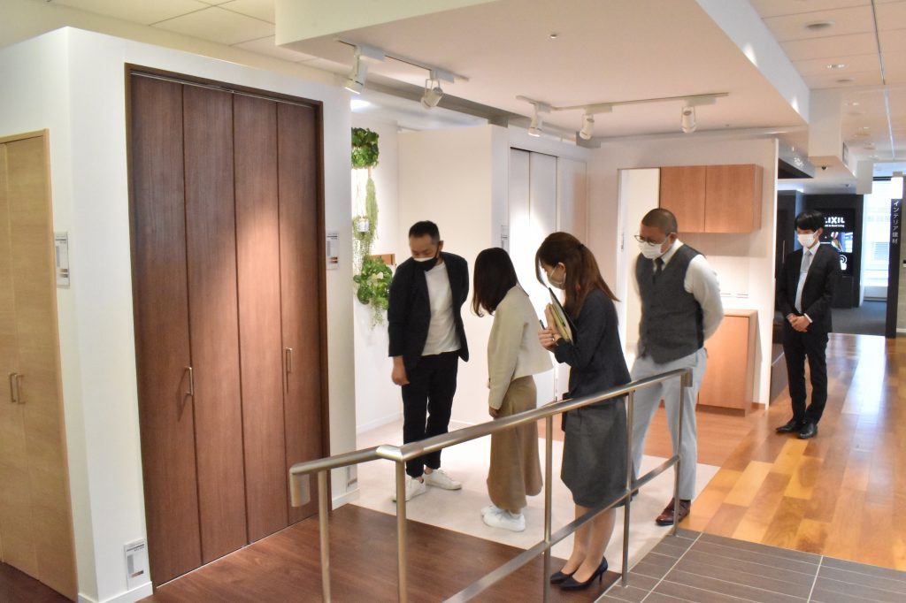 設備や仕様決めに当たっては、実際にメーカーのショールームを見学していただき、実物の標準設備仕様の案内を受けた後、ご希望のオプションがあればお見積り~承認~施工という流れを取っています。