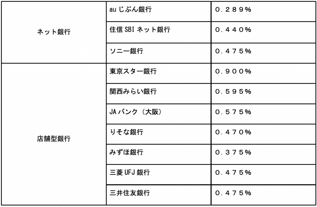 冒頭でお伝えしたように、店舗型銀行でも低金利のところが増えています。