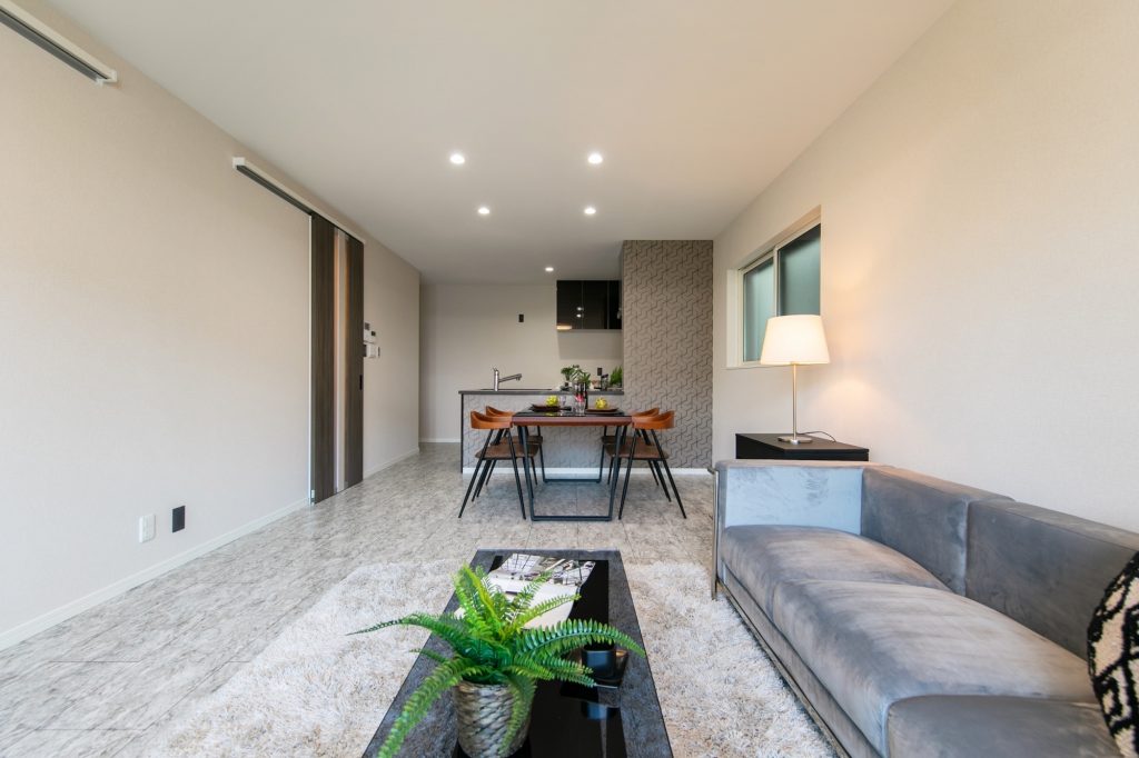ダイニング・キッチンにはダウンライトを採用し、仕切りやカウンターの立ち上がりのない人気のフルフラットタイプのキッチンは開放感抜群です!