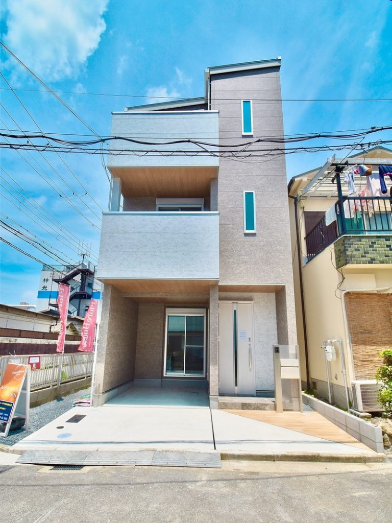 阪急京都線「正雀」駅徒歩6分、JR京都線「岸辺」駅徒歩9分、限定1区画の分譲地「フィオレハウス吹田南正雀」に完成した3階建3LDKモデルハウスです。