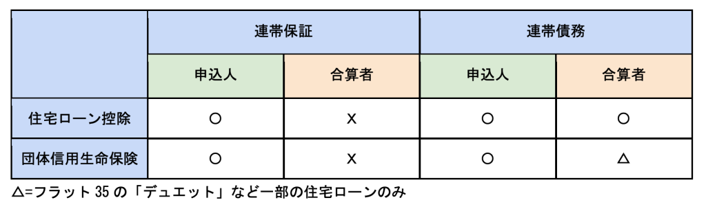 またフラット35の「デュエット」などの連帯債務タイプの住宅ローンなら、申込人だけでなく収入合算者も「団体信用生命保険」に加入できます。