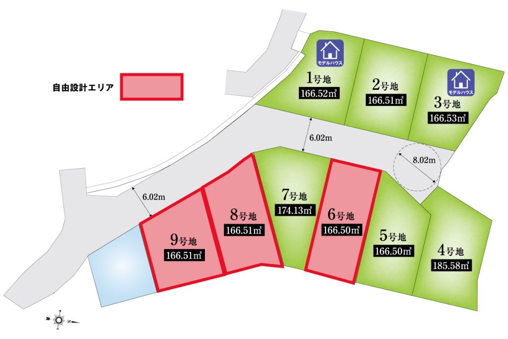 ・敷地面積/166.51m²(50.36坪)〜185.58m²(56.13坪)