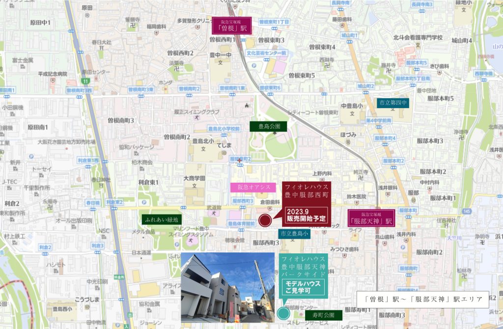 現在近隣で分譲中の「フィオレハウス豊中服部天神パークサイド」までは車で約4分。