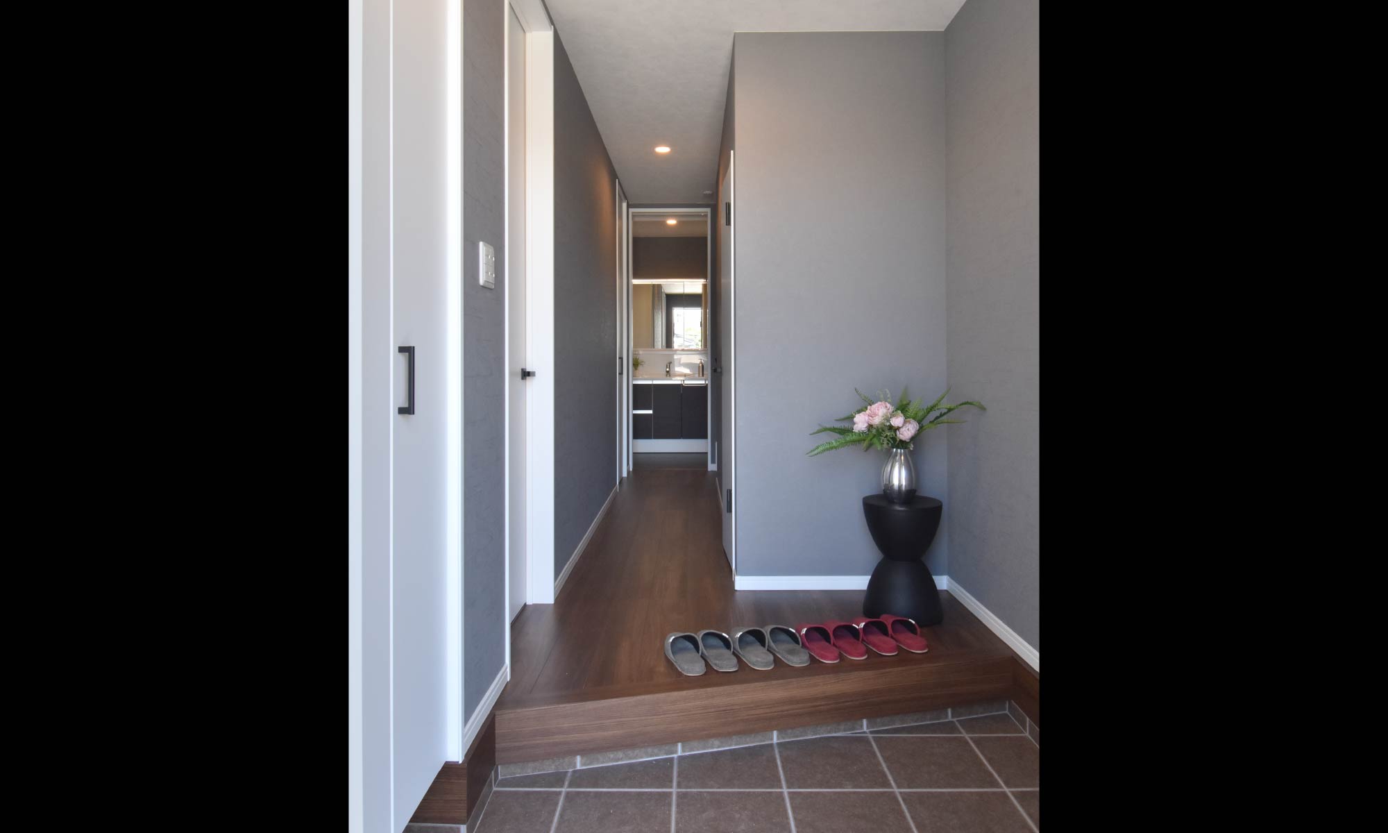 - 大型のシューズクロークを配置した玄関は、上部に吹抜けを設けスッキリ広々とした空間を実現。
