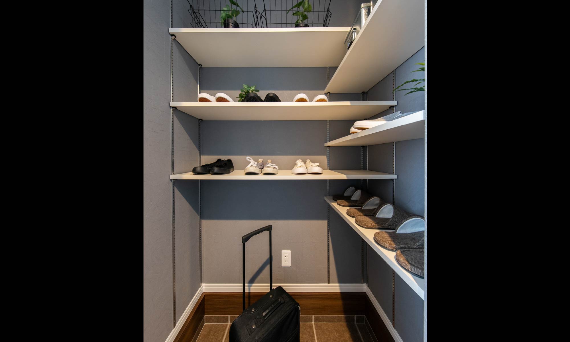 - 来客時にもプライバシーを守る、玄関がすっきりと片付くシューズインクロゼット。