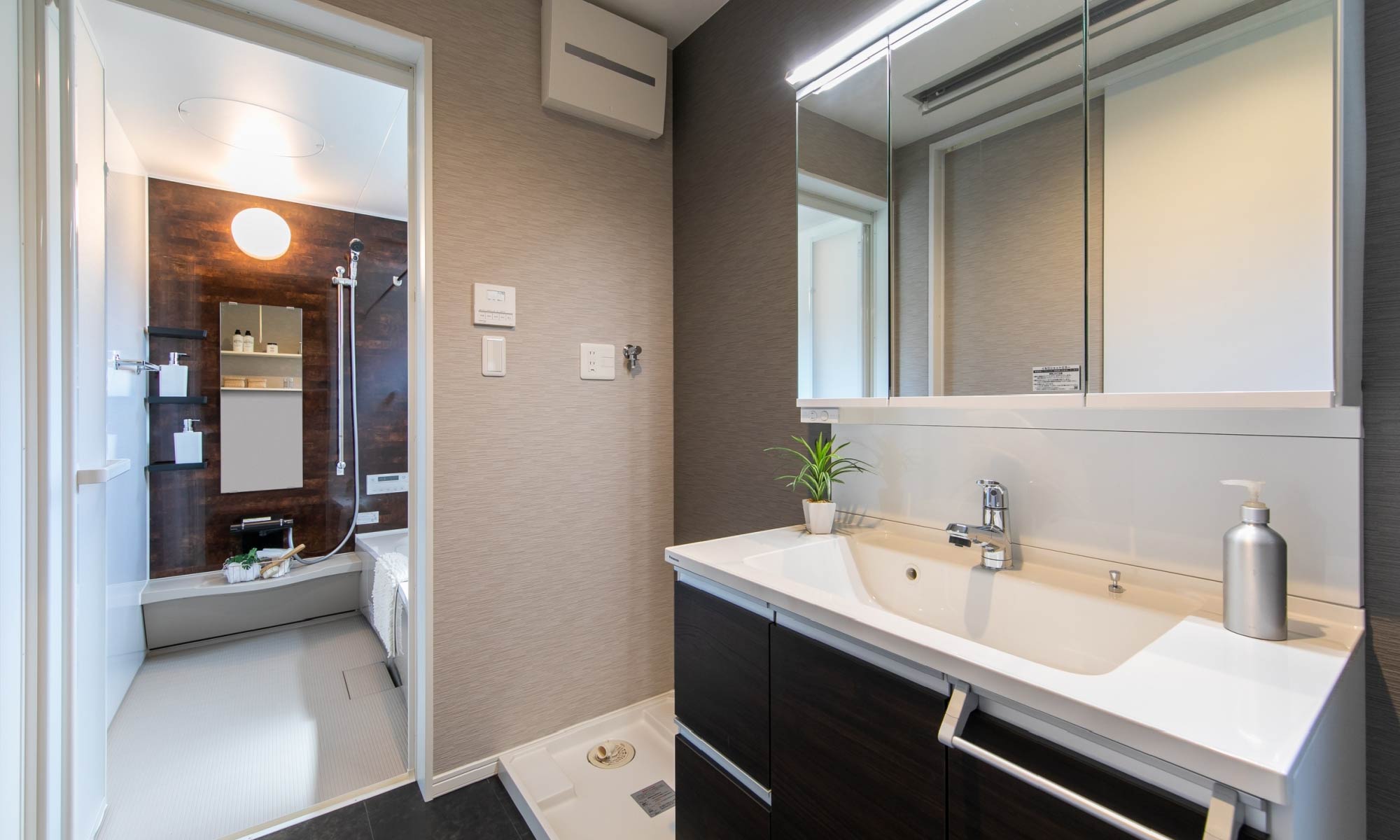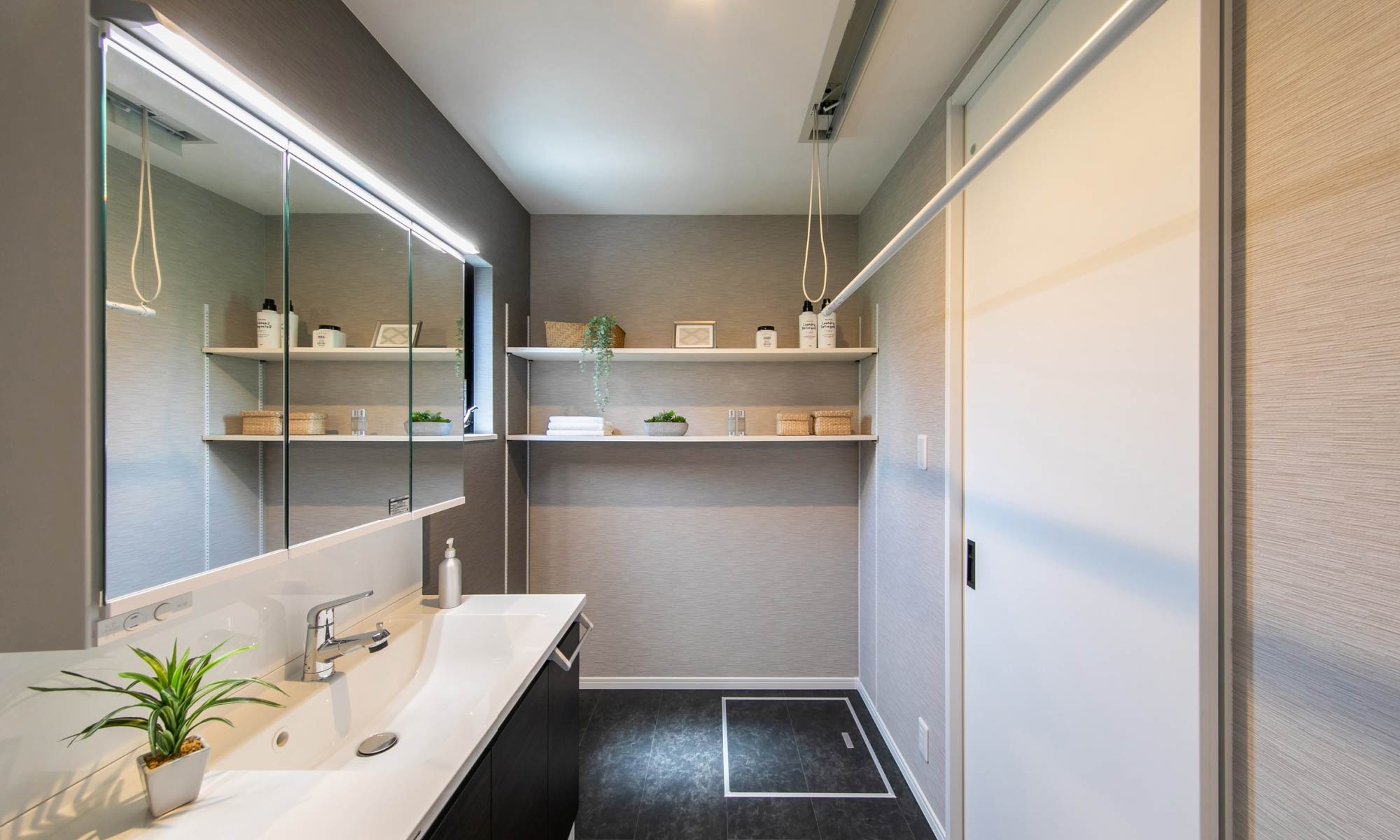 - 2階には水廻りを集約して家事効率を高める、キッチンから出入りできる洗面室。