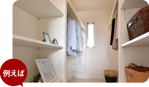 - 1階の洋室には、ご夫婦の衣類をすっきりと納める大型のウォークインクロゼット。
