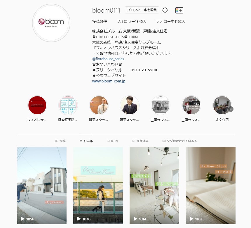 新機能「リール」を利用した、フィオレハウスシリーズイメージムービーを配信中です。