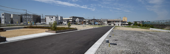 街区内の道路は6m幅。人と車のすれ違いにもゆとりがあり車庫入れの切り返しもしやすい、ゆったりスッキリとした広さです。