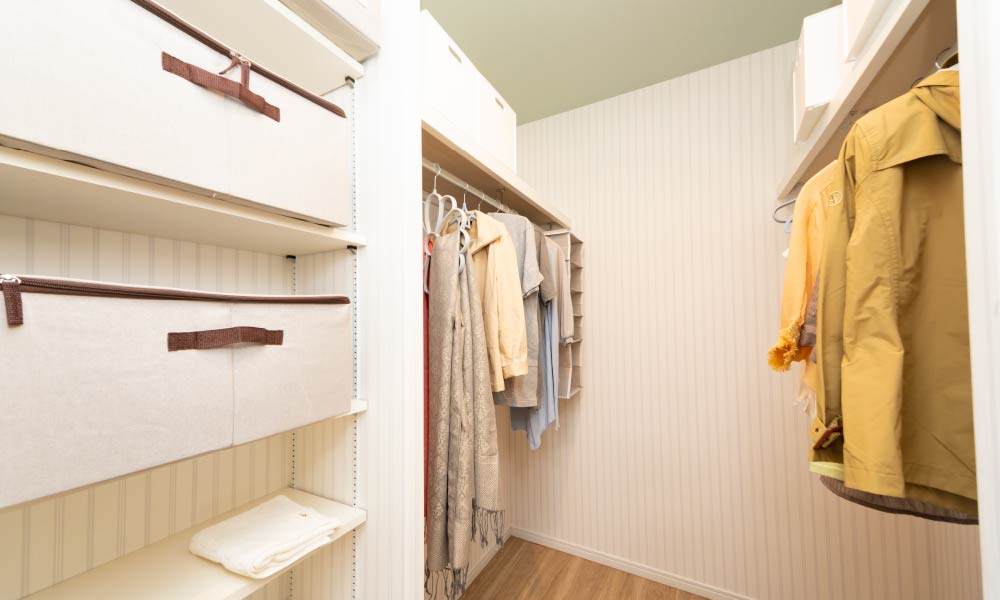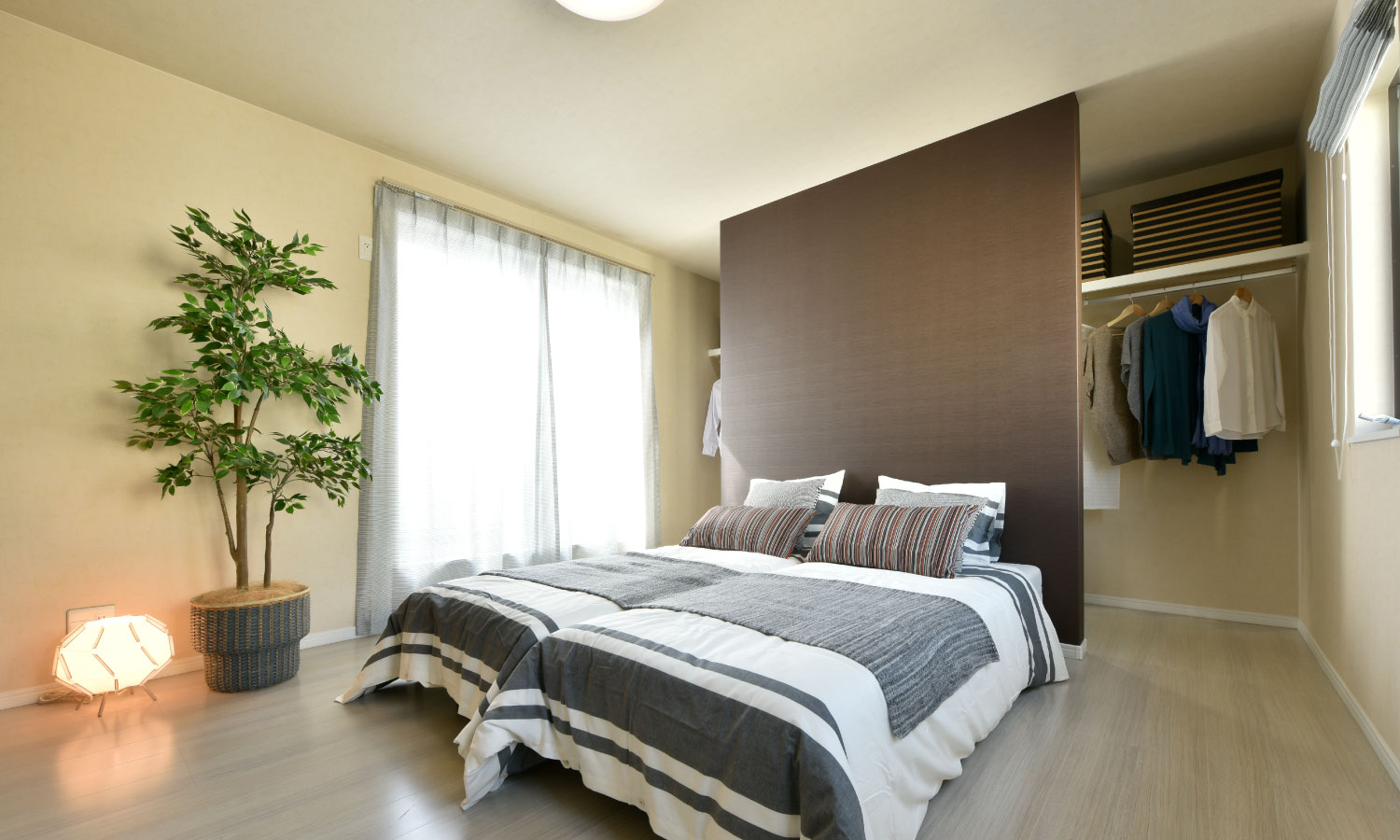 - 主寝室には、ご夫婦の衣類をすっきりと収納できるパイプハンガー・可動棚付のウォークインクロゼットを設置。