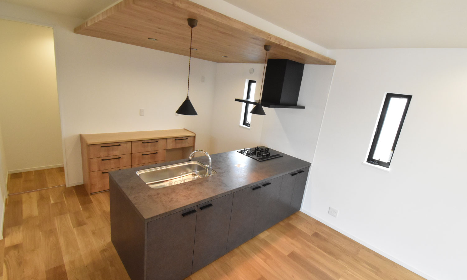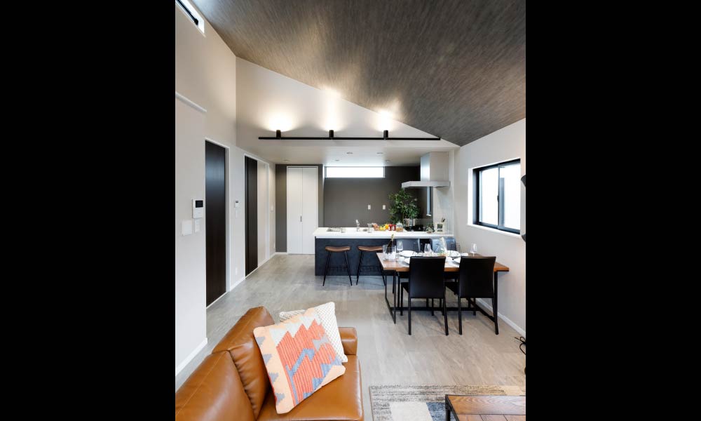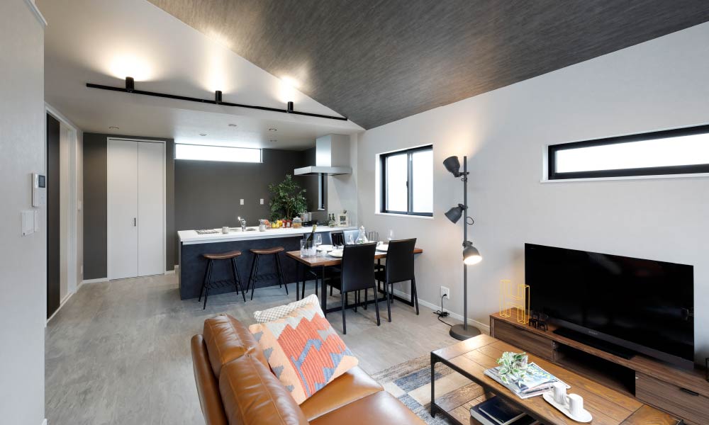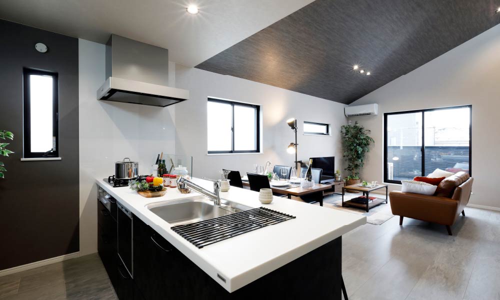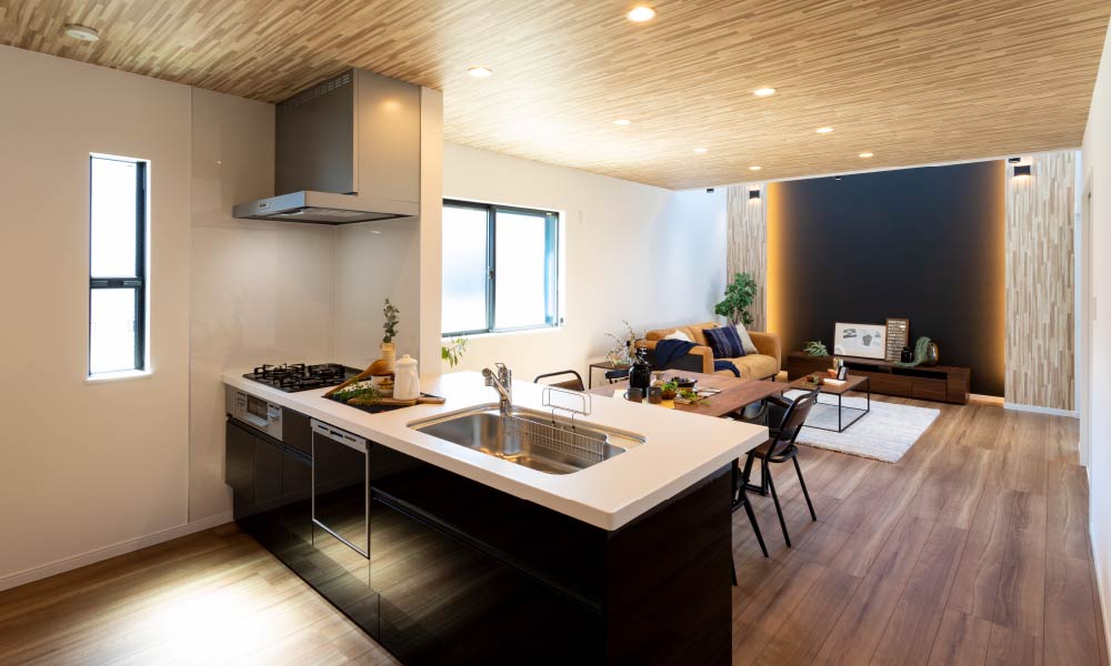 - オープンキッチンの採用でフロア全体に一体感のある、2階に設けた広がりあるLDK。
