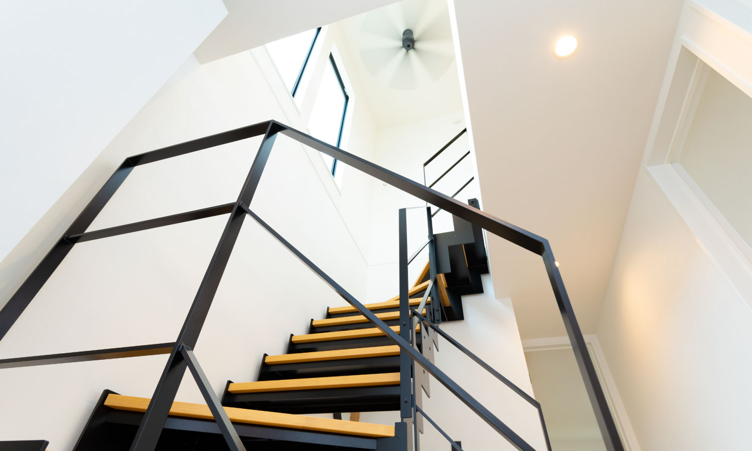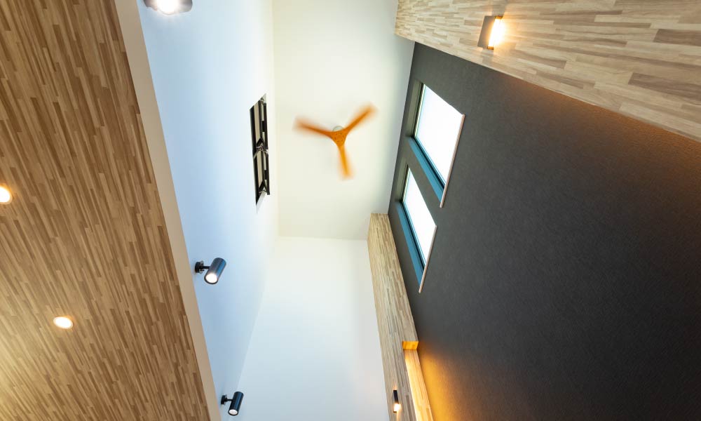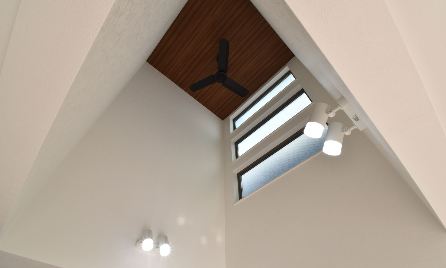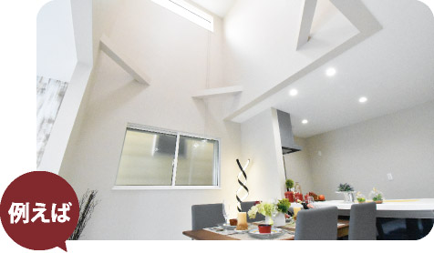 - リビングの南側に、上部からも明るい陽ざしを採り入れる開放的な吹抜けのスペース。